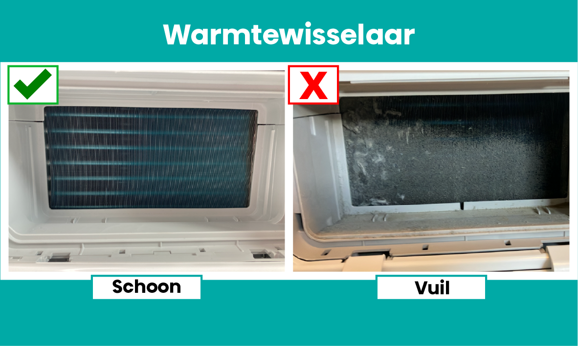 Controleer de warmtewisselaar en het filter van de warmtepomp, maak deze regelmatig schoon. Wij adviseren om het filter van de warmtepomp na elke 5 droogbeurten schoon te maken en de warmtewisselaar na elke 20 droogbeurten. Lees ook dit artikel en bekijk de video: Hoe maak ik de droger schoon?